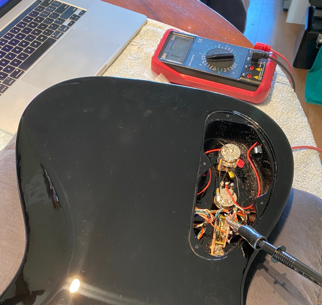 Anyway, here are some shots of the guitar build in action. Wiring it up.