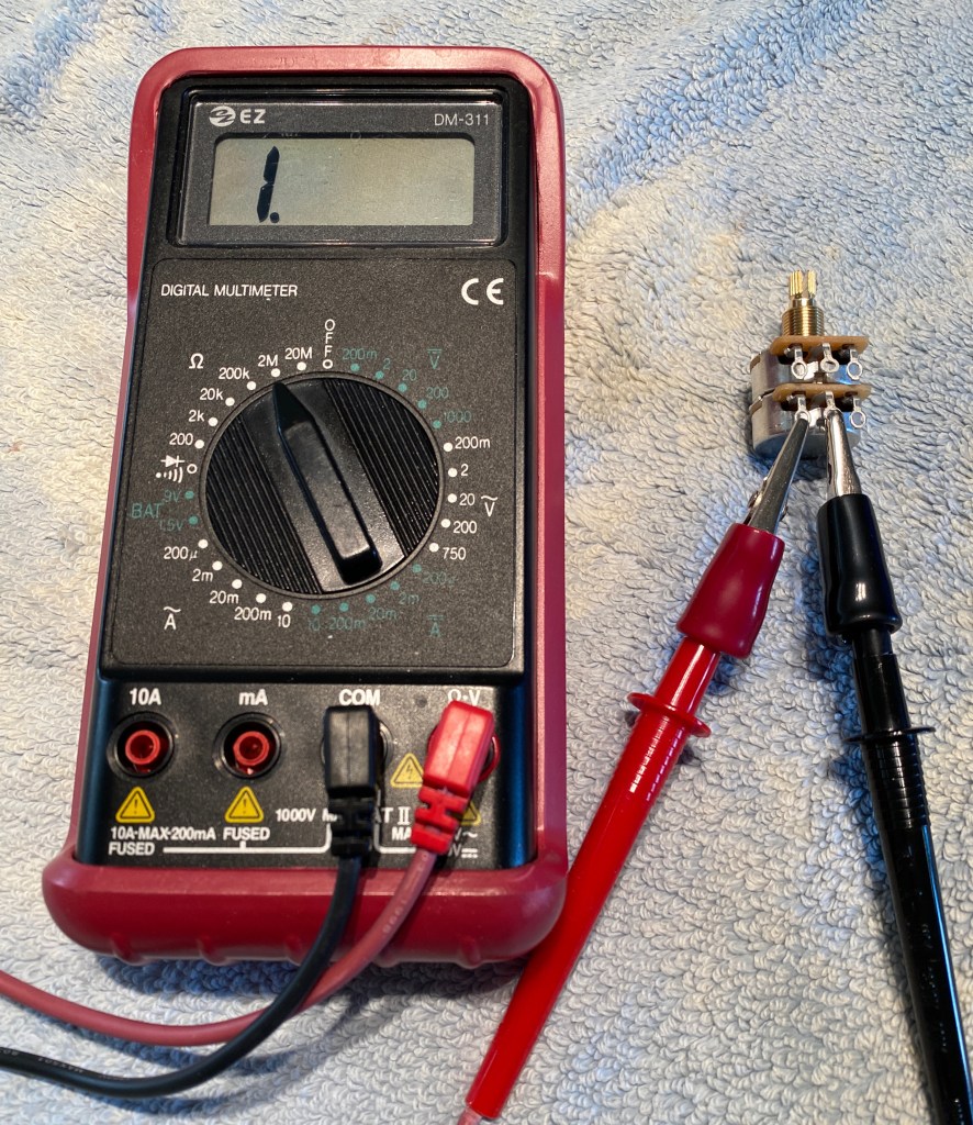 The same detent position on the 1M pot measures 0 Ohms resistance.