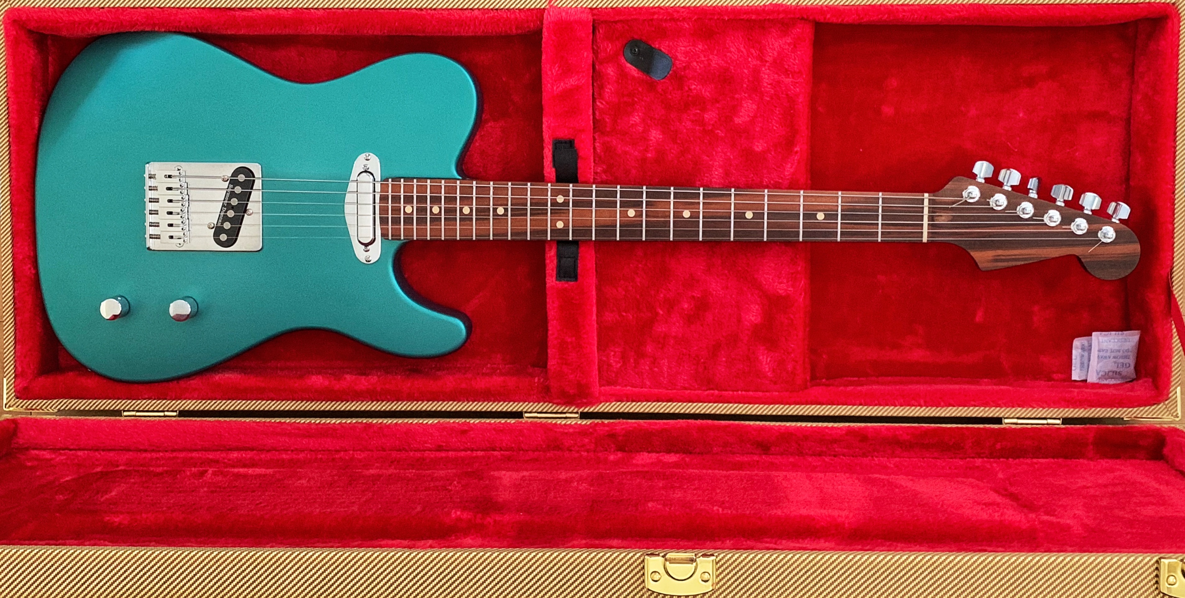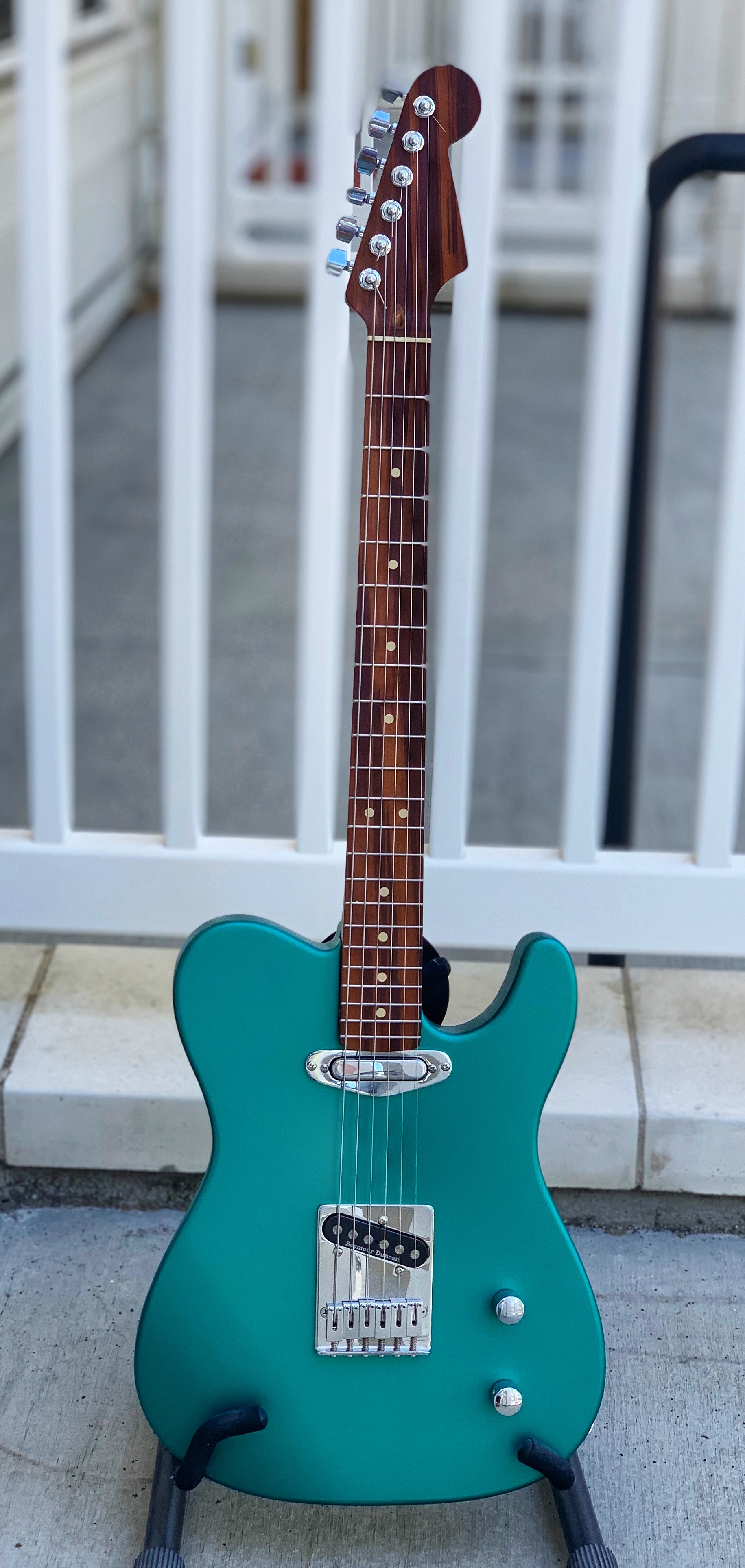 Telecaster shape, Strat shaped neck pocket, clear Sherwood Green satin finish